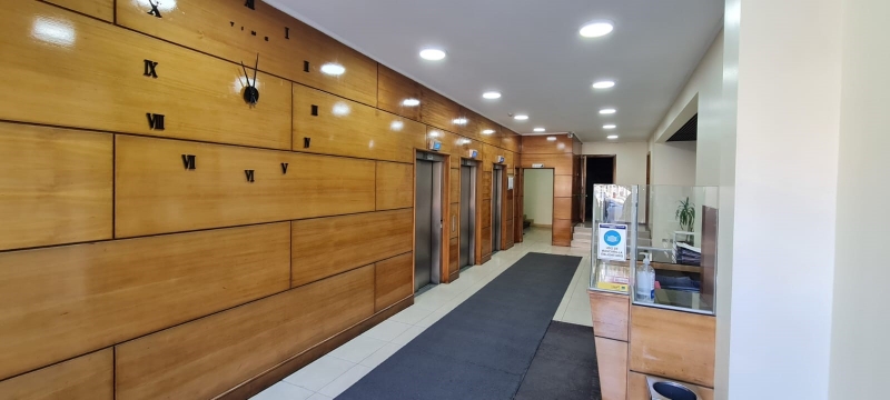 La oficina se encuentra en el cuarto piso, con una superficie de 68 m2 y un estacionamiento ambos con sus respectivos roles.