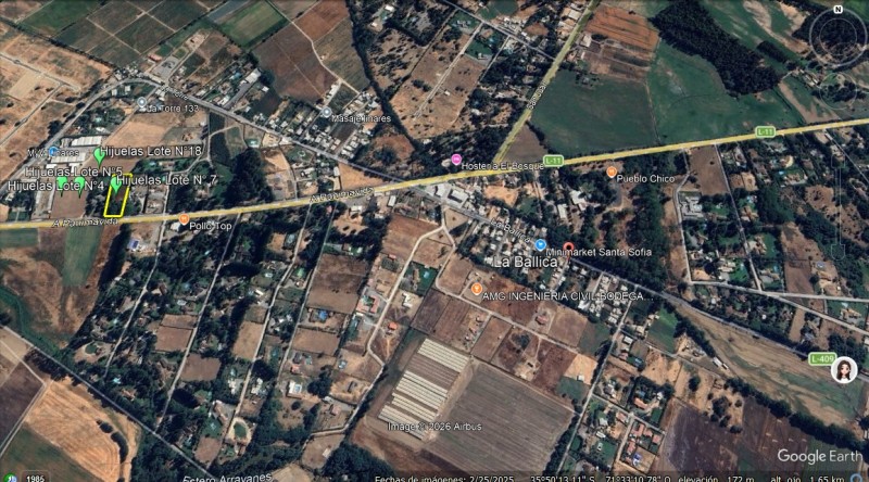 Atractiva propiedad ubicada en área rural al lado norte de Ruta L - 11 (salida oriente que la ciudad de Linares hacia las localidades de Quinamávida, Panimávida y comuna de Colbún) a metros del radio urbano y que tiene un frente de 43,15 metros por 116 metros de fondo.